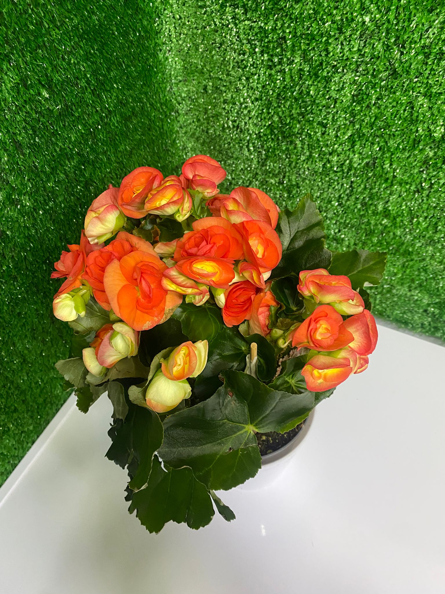 Turuncunun sıcak ve enerjik tonlarını taşıyan begonya, bulunduğu ortama canlılık ve pozitif bir hava katar. Yoğun çiçek yapısı ve parlak yapraklarıyla hem dekoratif hem de şık bir saksı bitkisidir.