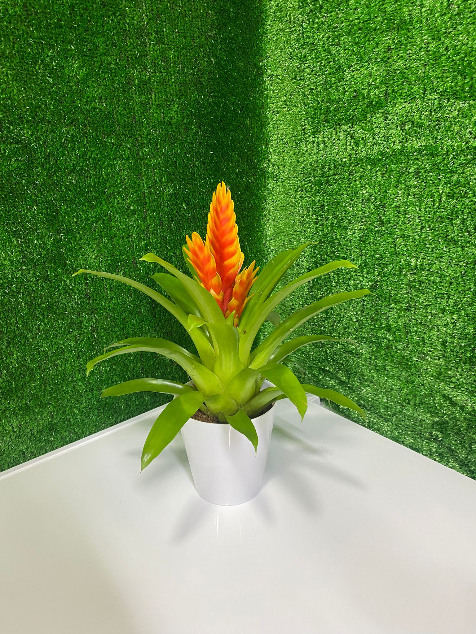 Turuncu ve sarının canlı uyumunu taşıyan bu vrezya, tropikal görünümüyle bulunduğu ortama enerji ve sıcaklık katar. Parlak yeşil yaprakları ve dikkat çekici başak formu sayesinde dekoratif açıdan oldukça güçlü bir etki oluşturur.